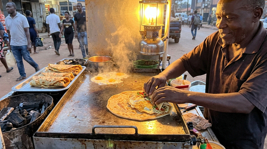 By Charles Lubega | Senior Food Writer & Cultural Guide, Travel Giants Uganda 6 Years Eating Across Uganda | Vendor Friend to Generations of Cooks | Self-Appointed Rolex Connoisseur The Explicit Answer: What You’ll Taste in This Guide Ugandan food doesn’t announce itself with Michelin stars or white tablecloths. It whispers from roadside rolex stands, from smoky fish joints along Lake Victoria, from grandmothers stirring groundnut stew in cast-iron pots. After 6 years of eating across this country—from the Karamoja plains to the Mount Elgon foothills—I’ve learned that the best meals aren’t found in tourist hotels. They’re found where locals eat. This map leads you there. This guide reveals 12 essential Ugandan dishes, exactly where to find them, and the local vendors who’ve perfected them over generations. You’ll learn what to order, how to eat it (etiquette matters), and the stories behind each dish that make it taste even better. Quick Overview of the 12 Dishes Dish Region Best For Rolex Kampala (nationwide) Breakfast, late-night, street food lovers Luombo Central Uganda (Buganda) Hand-food enthusiasts, ceremonial meals Muchomo Northern Uganda (nationwide) Meat lovers, evening grazing Malewa Eastern Uganda (Mount Elgon) Adventurous eaters, smoky flavors Eshabwe Western Uganda (Ankole) Rich, creamy sauce lovers Groundnut Stew Nationwide Comfort food seekers Nsenene Central Uganda (seasonal) Adventurous eaters, seasonal delicacies Fresh Nile Perch Lake Victoria shoreline Lakeside dining, fresh fish Matoke Nationwide Starch lovers, everyday meals Posho and Beans Nationwide Budget travelers, simple pleasures Luwombo Central Uganda (Buganda) Celebration food, special occasions Waragi and Tonto Nationwide (rural for tonto) Adventurous drinkers, social experiences The deeper truth: Every dish tells a story—of migration, of tradition, of survival. Eat with curiosity, and you’ll leave with more than a full stomach. You’ll leave with understanding. I’ve shared meals with grandmothers in villages without electricity, with fishermen at dawn on Lake Victoria, with street vendors who’ve been serving the same corner for 6 years. Let me introduce you to the tastes that define Uganda. The Philosophy – Why Eat Like a Local? Gist: Before we dive into the 12 dishes, you need to understand why eating local matters—and how to do it right. Three Reasons to Eat Like a Local 1. The Food Is Better Hotel buffets serve food that’s been sitting for hours. Street food is made fresh, to order, with love and attention. 2. The Stories Are Richer Every vendor has a story—how they learned their craft, where the recipe came from, why they add that secret ingredient. 3. Your Money Goes Further Paying a local vendor directly supports families, not corporations. Your shilling has more impact. The Golden Rules of Eating Local Follow the crowd: If locals are lining up, the food is good. Watch before you order: See what others are getting, how they eat it. Be polite: Greet the vendor, ask questions, show appreciation. Carry small bills: Not every vendor has change for large notes. Trust your gut: If a place looks clean and busy, it’s probably fine. The Honest Truth: You will get sick of hotel buffets by Day 3. Your first rolex from a roadside stall will be the meal you remember forever. Trust the locals. They know what’s good. Dish #1 – Rolex: Kampala’s Gift to the World Gist: Rolex has nothing to do with watches. It’s a contraction of “rolled eggs”—a chapati wrapped around an omelet, often with vegetables. It’s Uganda’s unofficial national street food, and everyone has an opinion on where to find the best one. Quick Facts Factor Details Dish Name Rolex (rolled eggs) Region Nationwide, but Kampala is the heartland Main Ingredients Chapati, eggs, onions, tomatoes, cabbage (optional: avocado, meat) When to Eat Any time, but especially breakfast and late night Price 2,000-5,000 UGX ($0.50-1.50 USD) The Experience You’ll approach a rolex stand—often a simple cart with a hot griddle, a pile of chapatis, and a bowl of beaten eggs. The vendor will ask what you want: just eggs? with vegetables? with meat? Watch as they pour the egg mixture onto the griddle, scatter onions and tomatoes, and cook it to a perfect golden disk. Then comes the rolling: the chapati is laid flat, the omelet placed on top, and the whole thing rolled into a cylinder, wrapped in paper, and handed to you. It’s hot, slightly greasy, and absolutely perfect. Where to Find It (Local Vendor Spotlights) Kampala: Wandegeya Rolex Specialists Near Makerere University, a cluster of vendors has been serving students for decades. Look for the busiest stall—that’s where the locals go. Ask for “full” (with vegetables) and add avocado if you’re feeling fancy. Jinja: Main Street Night Vendors After dark, Jinja’s main street transforms into a rolex paradise. The vendors here are known for their spicy versions—ask for “with chili” if you dare. How to Eat It Unwrap slightly, eat from one end like a burrito Don’t be afraid of the grease—it’s part of the experience Pair with a strong cup of Ugandan tea (chai) for the ultimate breakfast Insider Tip The best rolex is the one you watch being made. Chat with the vendor. Ask how long they’ve been at it. Every rolex maker has a story—and they’ll share it if you show interest. Dish #2 – Luombo: Bundles of Flavor Gist: Luombo is steamed plantain and meat, wrapped in banana leaves and cooked slowly over fire. It’s not just a dish—it’s a ceremony. The unwrapping releases aromas that will haunt you. Quick Facts Factor Details Dish Name Luombo (also spelled luwombo) Region Central Uganda (Buganda kingdom) Main Ingredients Plantains, meat (beef, goat, or chicken), peanuts, vegetables When to Eat Lunch or dinner, special occasions Price 10,000-20,000 UGX ($3-5 USD) The Experience Luombo is cooked in banana leaves—each bundle a complete meal. The l