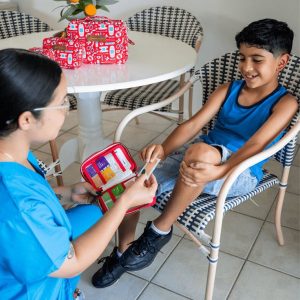 Supplies: Digital thermometer, tweezers, scissors, spare glasses/contacts.