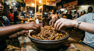 The rolex shared with a stranger at 2 AM, both of you laughing about nothing. The groundnut stew served by a grandmother who reminds you of someone you’ve lost. The grasshoppers passed around a circle of new friends, each person daring the next to take another handful.
